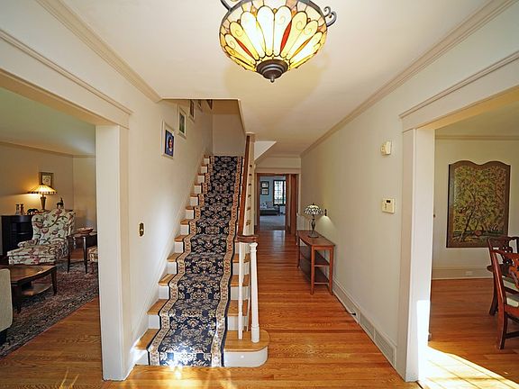 Classically elegant but comfortable 1920's Center Hall Colonial. Spacious and bright rooms. A massive kitchen with tons of cupboards, a pantry to die for, granite countertops, stainless appliances and a breakfast bar that opens to the large family room with skylights and wall to wall windows! Wood burning fireplace in the living room. Beautiful hardwood floors throughout most of the home. 2nd floor Laundry. Large room off master would make a great bath! Beautiful brick fencing surrounds the property which features an adorable shed and private covered patio perfect for entertaining.