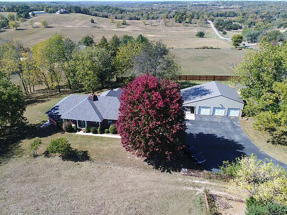 PRICE IMPROVEMENT! Wow what a setup! All-brick walkout basement home with in-law quarters, 4 acres with a view, and huge top-of-the-line shop... all in a prime location just minutes to both Springfield and Nixa! This quality home has been well maintained by the family who built it. Inside on the main level you'll find 3 bedrooms and 2 full baths in a split-bedroom layout. The spacious primary suite has deck access, and the en suite bathroom offers water closet with bidet, plus huge walk-in closet with custom shelving. Kitchen features granite countertops and nice pantry, there's a breakfast nook with beautiful valley view, plus a formal dining room that could be used as additional living space.The basement is the perfect in-law or teenager quarters, with 2nd full kitchen, 4th oversized bedroom (non-conforming no window), and 3rd full bath. There's also a massive ~17x26 rec/theater room that is wired for sound! Large concrete patio is right outside basement kitchen area. Stepping out onto the southwest facing deck, it's easy to imagine enjoying the sunset views each evening! There's wiring already available for a pool or hot tub, plus fenced area for pets. Be sure to walk the acreage and check out the 20+ black walnut trees plus 2 peach trees off back patio. This all-brick home is quality construction, with 2x6 exterior walls, silent floor joists, whole house vac, zoned HVAC, and all electric utilities. And if you need shop space, this is it! This amazing workshop is insulated and has electricity and concrete floors! Shop interior is 36x40, plus a 36x12 lean-to on the side, 3 overhead doors on front, and 1 overhead door on back, perfect for all your projects, side business, boats, or other toys!This home is conveniently located between Nixa and Springfield in Nixa school district, and is ready for its new owners, so schedule your showing today!