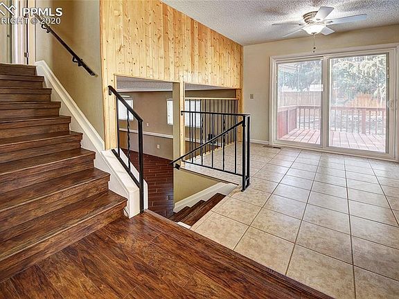 Back on market. No inspection was completed. Seller is looking for strong financing. Charming & well maintained home nestled on oversized, private corner lot*Conveniently located off Powers corridor, minutes to military bases, shopping, & restaurants*Elementary school & park across the street, great for kids & pets*Ample side yard w/space for workshop or RV parking (electric access into garage)*Low maintenance xeriscape front yard. Fully fenced backyard w/2 RV accesses, newly painted large deck, two concrete patios & a Gazebo w/electric access, fruit trees, 2 oversized storage sheds & space for children's play equipment & pets (sprinkler system in rear)*Front room perfect space for living or formal dining includes Pergo floors & a large picture window*Updated kitchen w/Alder cabinets, tile floors, wrought iron railing, newer SS appliances w/5 burner gas range oven, granite tile counters & nook w/walkout to deck*Garden lower level features newer tile flooring throughout*Spacious LL family room w/a brick wood burning fireplace, a private bedroom or office, a 3/4 bath & laundry area. Great space for entertaining & guests*Upper level includes 3 bedrooms & a full bath. Master bedroom w/direct access to bathroom & a walk-in closet. Second bedroom has low maintenance Pergo like lino flooring. Third bedroom currently configured as an additional master closet, but can easily be converted back*Full bath w/Jack-n-Jill hall & bedroom & hall access, decor vanity w/granite countertop*Drywalled garage w/service door to backyard & dedicated circuit for heater*Ceiling fans in all bedrooms, 50 Gal hot water heater*Master bedroom has a walk-in closet & direct access to bathroom*Newer updates include (2016 & 2019): roof, gutters & sheeting, electric panel w/150 AMP, fencing & RV gate, concrete patio & Gazebo, appliances, stair & LL flooring, drywalled garage, newer doors & openers, front sidewalk, mailbox, landscaping, 2 patios & Gazebo*No HOA*Move in ready