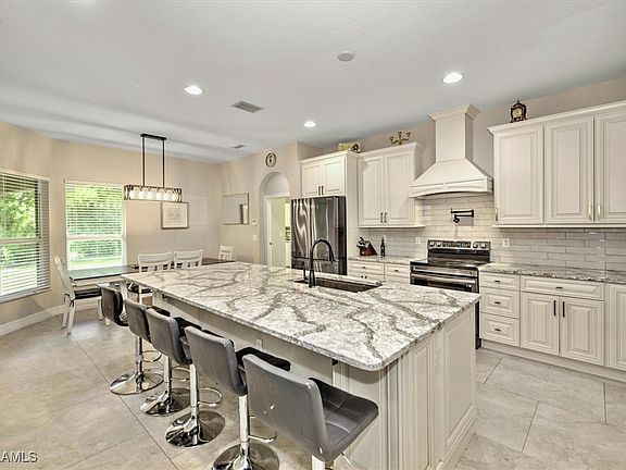 One owner custom built home in North Fort Myers. Upon entering the front doors you are greeted with an open floor plan with high ceilings and a gourmet kitchen. The owner suite has a luxury Whirlpool garden tub, a large walk-in shower and its own AC system for your desired comfort. First floor is tiled throughout while the second floor living area has brand new carpet with its own bathroom and private balcony. Laundry room is equipped with a deep sink and cabinetry. Oversized pocketing sliders allow the home to open up for outdoor entertaining. This home offers a pool bath, an outside electric box and is pre plumbed and wired for an outdoor kitchen already in place for you to be able to add on the pool of your dreams with ease. The yard backs up to a preserve that is fenced in and lined with bamboo for added privacy. Located in a non-HOA neighborhood you can park anything in the driveway with no restrictions. Home is currently on well water but has the option of being hooked up to city water if you choose. The entire home was updated in 2023 including a new roof. The main AC unit in 2024. The flood insurance policy is fully transferable with all discounts; owner currently pays $2856 per year.