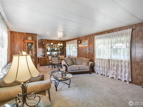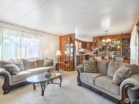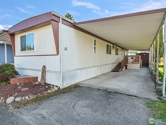 55+ community needs a new neighbor! Darling 924sq feet Singlewide available! This lovely home has 2 Bedrooms/2 Full baths; primary bath has soaking tub. New interior paint, carpets, and includes all appliances (washer/ dryer also!). Newer windows and furnace. Wall A/C for summer months is installed. Personal shed on lot, with 2 covered carports, one on each side. Clubhouse has monthly activities if interested, seasonal pool. Pets ok when preapproved by manager. RV optional parking for super low monthly fee. Space rent for home is one of the lowest in Snohomish County and includes water/sewer! Fantastic local shopping and clinics close by. Buyer must be preapproved to purchase with simple park application.