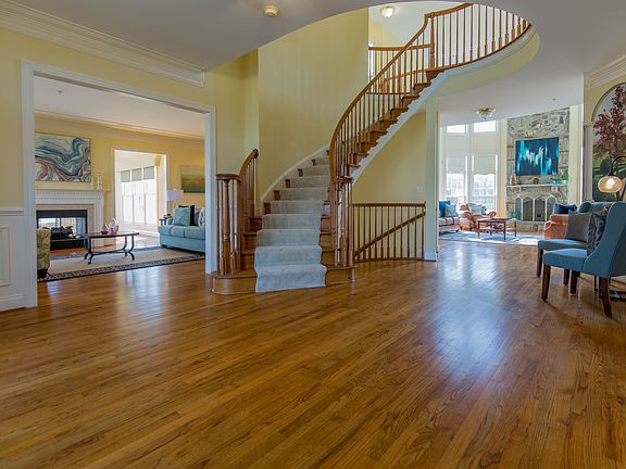 What can't you say about this stunner of a home, the details are truly astounding! From the grand entry foyer with a curved staircase to the palatial two-story family room with stone fireplace and the mega eat-in kitchen with storage galore, breakfast bar and a chef's dream double oven/6-burner range combo to the stately master suite oasis, this home has it all. Flooded with natural light streaming through numerous windows, the hardwood floors and pristine carpet shine! The opulent formal living and dining feature intricate crown molding and an equally intricate tray ceiling in the dining. The fully finished apartment-like lower level offers sanctuary to family and visiting guest alike, it even includes a home gym. Enjoy relaxing on the deck and in the hot tub looking out to a wooded treeline with a cup of tea or gathering with friends. You’ll be delighted to call this home!