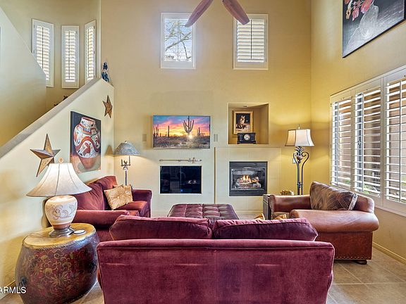 This sought-after home in The Ridge at McDowell Mountain offers one of the most spacious layouts in the community with 2 bedrooms, 2.5 baths, a designated office, and a two-car garage. Plantation shutters highlight the light-filled living area, while the kitchen boasts granite countertops, updated appliances, and beautiful knotty alder custom cabinetry. LV plank flooring extends throughout the upstairs. The unique unit backs to a common area and is close to walking trails. Recent updates include a new A/C unit (2022) and refreshed bathrooms (2021). Community amenities feature a pool and fitness center, with shopping, dining, entertainment, and hiking nearby. Ideal for seasonal or full-time living. Award-winning McDowell Mountain Ranch is a premier master-planned community located in North Scottsdale. Situated at the foothills of the McDowell Mountains, enjoy the beautiful desert serenity yet also have all the conveniences of living "in-town" just outside the neighborhood. The 101 Freeway is 5 minutes away, as well as restaurants, shopping, groceries, and so much more!