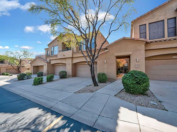 Welcome Home to this well maintained luxury condo nestled among the McDowell Mountains. This spacious 2 bedroom plus den unit offers spacious living at its finest. Enjoy sunsets in either 1 of the 2 private balconies. This home boasts plantation shutters, granite slab counters in kitchen which extend up to the back splash, new 3.5 ton Trane AC and furnace in 2022, epoxy flooring in garage and built-in garage cabinets. Newer water heater, water softener and RO system installed in 2018. The neutral interior offers a bright, airy space perfect for anyone. McDowell Mountain Ranch offers a wide range of amenities which include golf, hiking, pools, tennis, basketball courts, to name a few. Come today and make this home yours! Close to shopping and eateries; it is truly a lifestyle to enjoy!