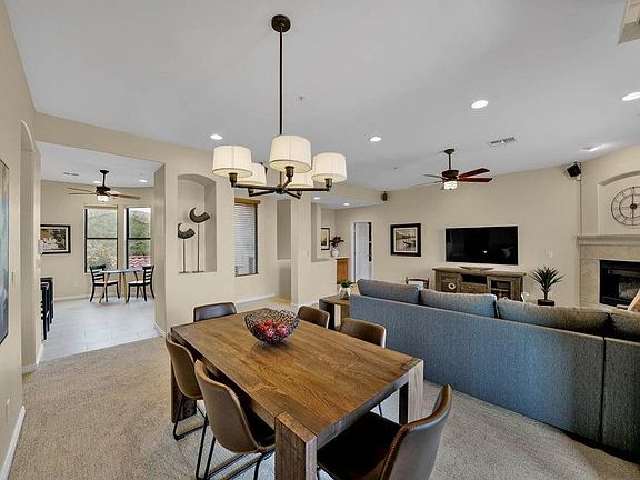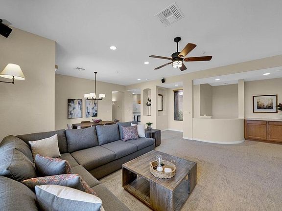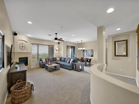 Fully furnished luxury condo recently remodeled with neutral carpet and tile flooring, quartz counters in bathrooms and full interior paint. Designer touches throughout this 3 bedroom, upper level condo with gorgeous new furnishings and decor. Split bedroom floor plan features a master suite complete with king bed, large walk in closet, bathroom with double vanity, separate shower and tub as well as a private patio. Well stocked kitchen with granite counters, new 65'' smart HD TV in family room and 55'' in master, large laundry room with full size washer and dryer, 2 car attached garage, gas fireplace and a second private patio off the family room to catch spectacular Arizona sunsets. This gated McDowell Mountain Ranch community offers a beautiful clubhouse, a heated pool and spa as well as a fitness center.