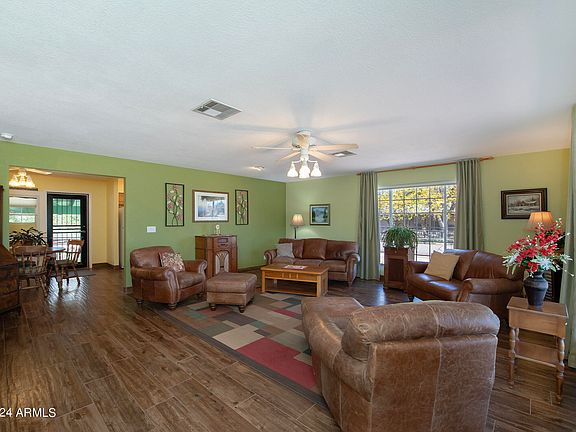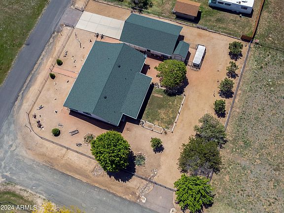 Charming custom built home nestled in the serenity of Peeples Valley. This home offers beautiful porcelain flooring throughout, perfect sized great room & eat in kitchen, large laundry room & Pantry with plenty of storage, security screen doors front & back, low maintenance landscaping with automatic sprinkler & drip system on timer, 4 fruit trees - apple, peach, cherry & apricot, Oversized 24' x 24' ft garage with 18'garage door with additional 16' x 24' workshop both fully insulated, windows in shop for ventilation & electrical outlets throughout. This corner lot just under a half-acre is fully fenced with 4 ft Cyclone fencing & 3 double gates for easy Access throughout the property. RV hookups with water & 50 Amp Electric, 10' x 12' shed with 10' ceiling for yard equipment & extra storage, Dog kennel & dog run with doggie door entry to workshop, new roof installed March 2023, House garage & Shop are lightning rod protected, house & garage are sided with fire resistant Hardie Board siding. Large, covered front & rear porches to enjoy the gorgeous Mountain views & Wildlife sightings.