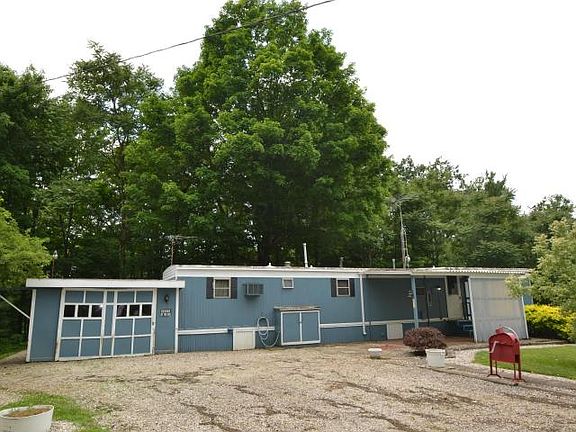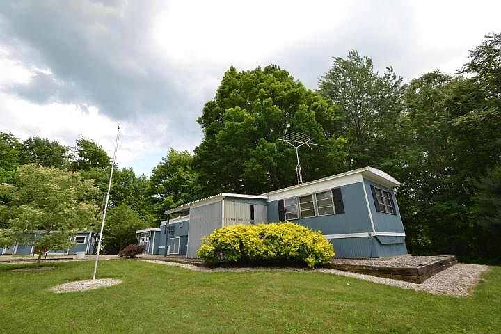 Hunters dream retreat! 13+ private wooded acres with small cabin trailer with attached garage and 5 additional outbuildings including large 32x40 pole barn. Also, great building site for new home. All systems in place. Could live in trailer while home was being built. Timber available for harvest as well.