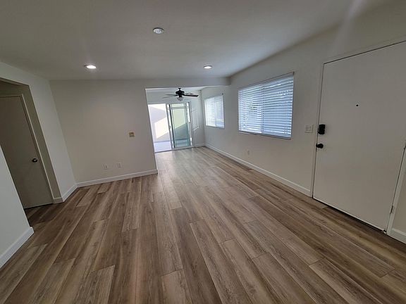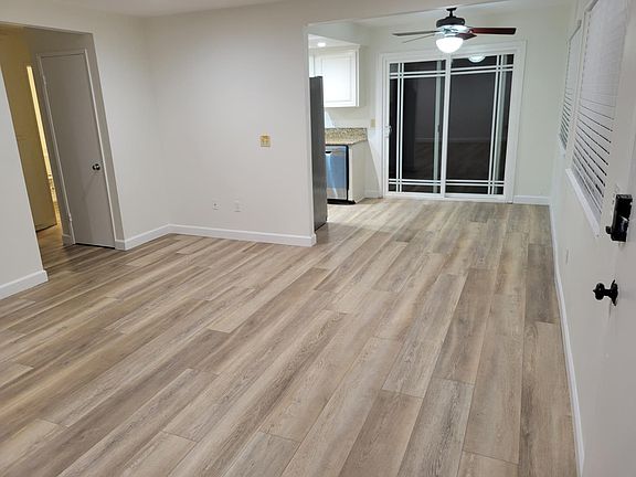 Upstairs 2 bedroom unit on quite cul-d-sac, 2 miles from the beach. New paint and vinyl plank flooring, unit has a patio and comes with one car garage and one parking space.. hook up for washer and dryer in garage. 1 year lease.1st month rent and security deposit due.Water and trash paid for.. No pets and no smoking. Must have credit score of 650 and above.