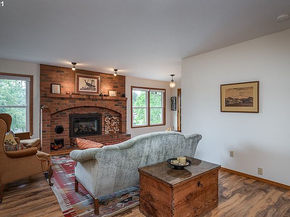 Brick daylight ranch home w/full basement. Second kitchen, living & dining rooms, ideal In-law quarters, possible ADU. Lots of extra storage space, Enjoy the sunsets from the covered back deck, sun porch & patio. Gardener's Delight with raised flower bed, rose garden & mature blueberry plants. Neighborhood park with River access. Oversized 2 car garage, newer electrical panel, 2 furnaces, 1 AC unit, gas to both fireplaces. Extra 580 sq.ft. in unfinished portion of the basement, possible shop.