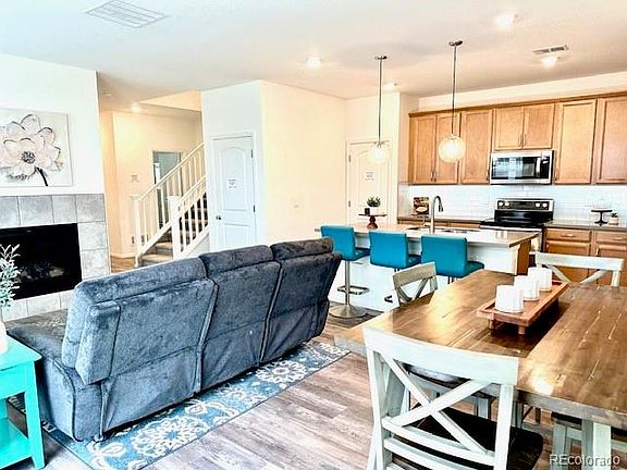 MOVE IN NOW - Don't wait for a home to be built. This home is barely lived in, move-in ready with window blinds, stainless appliances and a radon system already installed. Low HOA fees!! Welcome to your dream home where modern elegance meets convenience in this stunning two-story townhome. Boasting a contemporary design and nearly new construction, this residence offers the perfect blend of style, comfort, and functionality. As you step through the front door, you'll be greeted by an inviting and open floor plan, featuring high ceilings and ample natural light that accentuates the spaciousness of the living areas. The heart of the home is the well-appointed kitchen, complete with stainless steel appliances, quartz countertops, and a large island. This four-bedroom, three-bathroom townhome ensures ample space for everyone in the family. The master suite is located on the second floor, offering privacy and tranquility. The en-suite bathroom is a luxurious retreat with modern fixtures, a soaking tub, and a separate shower. Three additional bedrooms and an upstairs loft provide versatility for guest rooms, home offices, or play spaces. The windows have cordless blinds throughout. The location of this residence is great with the front door opening to views of the mountains, and across the street from Prospect Ridge Academy. Imagine the convenience of having educational facilities just steps away, making school drop-offs and pick-ups a breeze. Situated in a Baseline, this townhome is close to everything you need. Shopping, dining, and entertainment options are within easy reach, allowing you to enjoy the best that the community has to offer. Don't miss the opportunity to make this your home and experience the perfect blend of comfort and convenience. Schedule a viewing today!