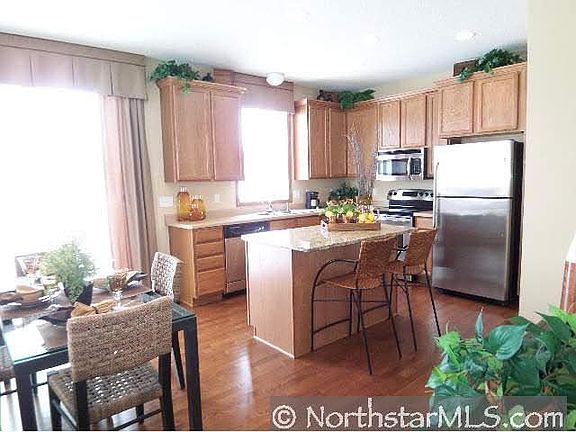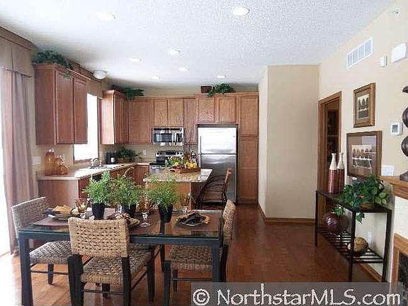 This cornor home features maple cabinetry and millwork; granite kitchen center island; recessed lighting in kitchen and dining area; private owner's suite with double bowl vanity; ceramic tile foyer; all white kitchen appliances; washer/dryer