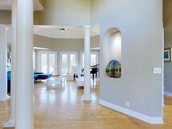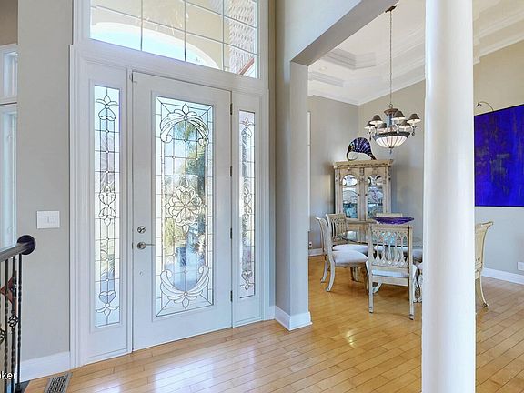 Welcome to this exquisite walk-out ranch nestled in the highly sought-after Chestnut Glen subdivision. This home is a masterpiece of modern luxury combined with timeless elegance, offering an impressive array of high-end features and thoughtful design elements that make it perfect for both entertaining and everyday living. The heart of the home is a completely remodeled kitchen featuring dark navy, solid wood Amish-crafted soft-close cabinetry and stainless steel accents. Enjoy an abundance of storage with all-drawer cabinets and a spectacular 10x6 island adorned with leathered granite waterfall counters and seating for five. Integrated multi-color and multi-temperature white LED lighting—controlled via Bluetooth—highlights the under-cabinet, in-cabinet, toe kicks, and under-island area Premium appliances include a Sub-Zero column refrigerator with dual freezer drawers, a Wolf induction range with concealed downdraft ventilation, an Asko dishwasher, a Thermador 30" Professional Speed Oven, and a fully automatic built-in WiFi-enabled and plumbed coffee center. Gorgeous hardwood floors span the entire first floor. The large great room features a gas fireplace flanked by custom built-ins, a stunning decorative ceiling, and three sets of 8-foot doors that open to the deck, blending indoor and outdoor living seamlessly. The adjacent dining room offers ample space for entertaining guests. The expansive primary suite offers a serene view and is equipped with a remote-controlled mini-split heating and cooling system for personalized comfort. The luxurious en-suite bath has been remodeled with separate vanities, a soaking tub, a separate shower, and a private toilet area. A massive walk-in closet completes this retreat. Two generously sized bedrooms share a well-appointed Jack and Jill bath, providing comfort and convenience for family or guests. The walk-out basement is an entertainer's dream, featuring a large family room that opens to a beautifully crafted bar with a sink and refrigeratorideal for hosting game nights or casual gatherings. An additional bedroom, currently set up as a game room with a pool table, and a cozy media room create endless possibilities for fun and relaxation. The Sony projector , Bose 5.1 surround sound, Denon AV Receiver and Samsung Blu-ray remain. A dedicated exercise room and another bedroom with a nearby full bath offer space for guests and hobbies alike. Step outside to your private backyard paradise, complete with a covered patio and bar area featuring a refrigeratorperfect for summer cookouts. The stunning fiberglass saltwater pool boasts LED multicolor lighting, three deck jets, an oversized natural gas heater for quick warming, and a new pool pump. The pool area is fully fenced and enhanced by a beautiful water feature, with ample pool deck space for lounging in the sun.