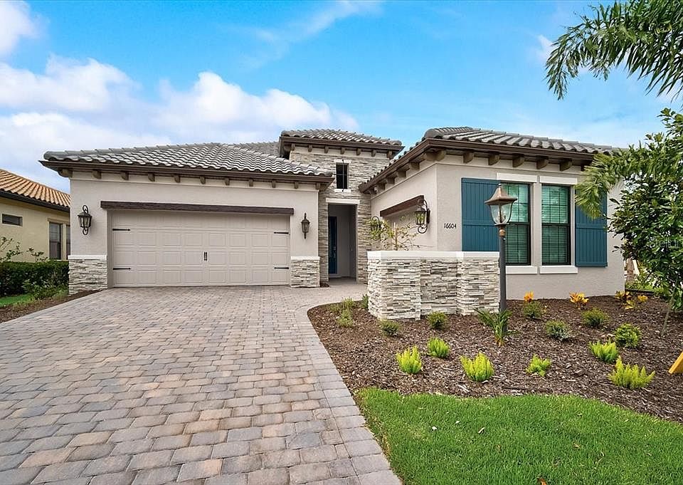 Don’t miss this opportunity to own a brand new home, finished in July 2022, in the sought after Country Club East in Lakewood Ranch! Walk through the gorgeous stacked stone front entry into this light and bright 3 bedroom, 2 ½ bath, Den/Office, 3 car garage home with many incredible features and upgrades. The open floor plan is perfect for entertaining and extends out to the additional large extended covered and 20/20 (no-see-um) screened lanai with outdoor kitchen, fireplace, and heated saltwater pool and spa, complete with a custom pool shower. Tongue and groove southern pine complete the magnificent ceilings in the great room, entryway, and covered lanai. The stylish gourmet kitchen is designed for convenience with quartz countertops, large island with seating area, cooktop with stainless steel hood, farmhouse stainless steel sink, wall oven, microwave and custom pantry with quartz counter coffee bar. There is even more entertaining space in the large Den/Office featuring built-in storage cabinetry with granite counters, a refrigerator, and built-in desk making this space perfect for a home theater, office or family gathering space. The master suite features a huge custom finished walk-in closet, tray ceilings and en suite bathroom with dual vanities and a large walk in shower with 2 shower heads and glass enclosure. Bedrooms two and three also have custom closets and share a bath with a walk in shower. The half bath doubles as a pool bath with access from the lanai. The large laundry room is a multifunctional space with custom cabinetry, sink and additional storage. Other outstanding upgrades include hurricane impact glass, wainscoting in the master and secondary baths, custom light fixtures and ceiling fans throughout, plantation shutters, remote controlled shades, extra electrical outlets and dimmers and tons of extra storage in the garages. A complete Smart Home package with upgraded Wi-Fi, stereo and cameras adds convenience and security. Designed to provide a private oasis the landscaping is upgraded with dense privacy shrubs and designer lighting. Live the Lakewood Ranch lifestyle, in this maintenance free community, in gated Country Club East with 3 amenity pools, fitness center, miles of walking trails and many levels of optional Lakewood Ranch Golf and Country Club memberships with golf, tennis, pickleball, dining, kid’s camps and more. Close to LWR Sarasota Polo Club, Nathan Benderson Park and UTC with dining, shopping, entertainment, and recreation. CCE is just a short drive to some of the best beaches in the country and SRQ airport with national airlines.
