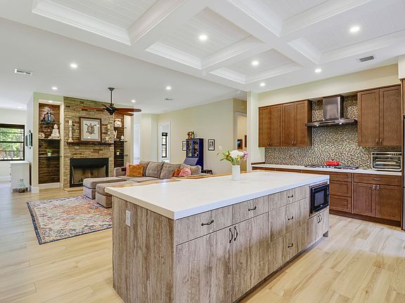 Welcome to this stunning, modern-rustic retreat. This captivating home offers 3 bedrooms, 2.5 bathrooms, and an expansive 2,266 square feet of living space, nestled on a sprawling 1.25 acre lot. Upon arrival, you'll be greeted by a charming wrap around front porch, perfect for enjoying the serene surroundings and blooming jacaranda tree. Step inside to find an open floor plan. The gourmet kitchen features a custom made live edge kitchen island, gorgeous cabinetry, tiled back splash, stainless steel hood, gas stove and custom molding over head. The floor to ceiling wood burning stone fire place serves as the focal point of this open living space. With an expensive yard and generous garage space, this property is a dream for outdoor and equestrian enthusiasts. The split floor plan allows for a spacious master suite, made complete with a large luxurious bathroom. Two additional bedrooms with a jack and jill bathroom round out the layout. There is a powder room just off the kitchen for guests and the laundry room is tucked just behind the fireplace. Grill from the gas plumbed back patio. This dry lot offers plenty of room for a pool should you choose to install one. Fisherman and gardeners will appreciate the plumbed potters bench alongside the garage, which is an attraction on it's own. The 1600 square foot, L-shaped building is large enough to park an RV in from the front and offers two additional work areas in the back! Additional Highlights: -All windows and doors are storm-rated (with exception of the wooden side door on the garage) - Power and water hookups complete the side pad by the garage that was engineered specifically for RV's - The rain-sensing irrigation system pulls from a separate landscaping well - The Reverse Osmosis System feeds a 300gal reservoir tank that not only supplies the whole house, but also the garage - The recirculating water system guarantees on demand hot water - The AC system features added equipment to combat allergens and humidity - A conduit has been run from the home to the power supply should you need additional energy - The home has been pre-wired and plumbed for a gas generator hook up