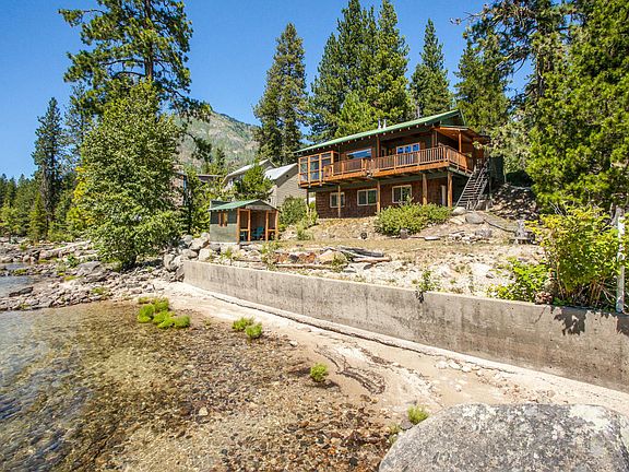 Lake Wenatchee waterfront cabin with some of the best views on the lake! 2 bedrooms, 2.5 baths, and beautiful woodsy finishes - pine paneling throughout, re-claimed wood beams, wood floors, cozy wood stove, natural stone accent wall, slate & tile, and a fun outdoor dining nook. Private driveway access down to the beach with a concrete boat ramp, dock, beautiful beach area, and a large area fronting the lake that could be finished into a nice yard. Easy winter access with attached carport.