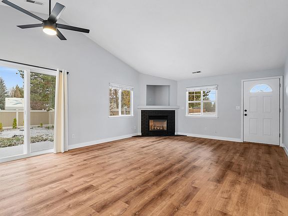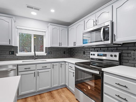 Nestled in the trees, sitting on a spacious .20 acre corner lot, you'll find 16605 William Foss Rd. This home is turn-key and ready to celebrate the holidays in! New LVP flooring throughout, new interior paint top to bottom including new baseboards. Beautiful quartz countertops installed in the kitchen and bathrooms along with new fixtures. Brand new appliances installed in the kitchen! New ceiling fans in the great room and all 3 bedrooms. Bright and open great room with gas burning fire place to enjoy cozy evenings in. Nice sized primary bedroom with walk-in closet. Large backyard with patio and grass area but plenty of extra space for your personal touch. Attached two car garage accessed by the back alley. This home is right off the main road into La Pine making for easy access to anything in town while being just a short drive to Bend if needed. Make this house yours before the holiday season!!