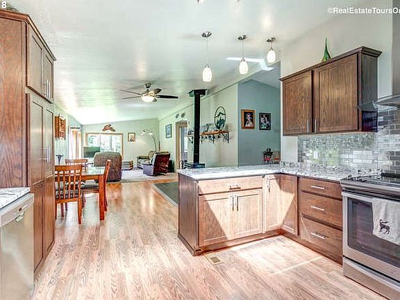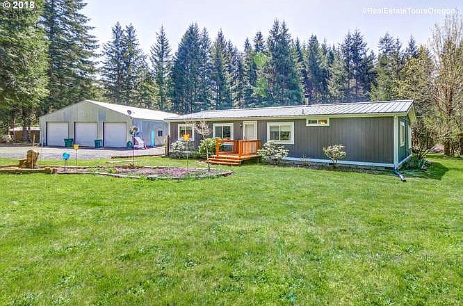 Remodeled 3 bed/2 bath home with wood stove, tile.Kitchen w/new appliances, granite & cabinets. Exterior paint, new windows, on demand WH, 24x30 deck. 60x40 shop with 3, 10 foot doors, heated separate room, many overhead lights & built in work bench. 2nd building is 600 sq. feet + loft. 50 GPM well with sprinkler system in big front lawn, All roofs are metal. 5 private acres, with seasonal creek just 3.5 miles from Vernonia.A WOW!!!