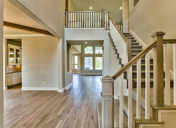 New Drees Custom Home in Rocky Creek. The Kenwood is a great floor plan for busy lifestyles. The open layout of the family room, kitchen and breakfast room features a cozy corner fireplace, a large serving island and windows overlooking the spacious outdoor living area. The main level includes the luxurious owner's suite and a guest suite. The second level includes two additional bedroom suites and a fifth bedroom along with game and media rooms.
