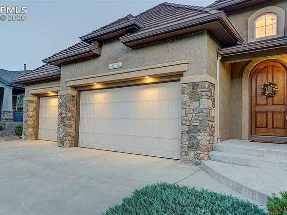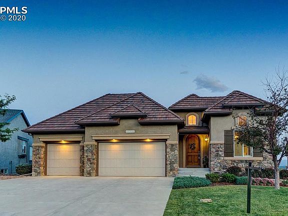 Gorgeous rancher on a spectacular lot backing to open space with unobstructed mountain views! House has never been lived in full time so condition is off the charts. Main level open floor plan features executive office, private side patio w/ gas fireplace, formal dining, high ceilings, and more of those views. Beautiful kitchen features granite countertops, tile backsplash, gas range, upgraded cabs w/ moulding, SS appliances, pendant lighting, & pantry. Large great room w/ stone wall, built ins, surround sound, fireplace, and picture windows. Master suite features private door to deck, attached 5-piece bath, tile flooring, updated fixtures, & large walk-in closet. Huge walk-out basement w/ pool table area, triple sided fireplace, wet bar, and high ceilings w/ custom design. Large storage room and a 2nd office. Lower patio living room set up. Upper composite deck great for entertaining or enjoying the views. Optional 5th bedroom easily added in basement office. Park like setting on this lot including scrub oak & fencing ready for pets. Fully finished garage w insulation & dry wall. Tile roof. Central A/C. Quiet and beautifully maintained community. Pride of ownership!