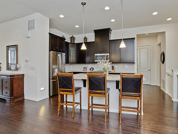This highly sought after paired patio home in Leyden Rock is a GEM! This home has been loved and impeccably maintained. Extensive hardwood flooring, informal dining room with volume & open concept layout. Generous kitchen with sleek ebony-stained cabinets and slab granite island & stainless appliances. The living room boasts views of open space & walking path + mountain views from the extended deck! Eye catching gas fireplace w/ tile surround, built-in shelving, and loads of light! Spacious master retreat, with large shower bath & generous walk-in closet connected to the main level laundry room. Bag drop/mud room off attached oversized 2 car garage. Neutral cellular window blinds throughout. One level living doesn't get any better than this! The full finished basement offers great secondary living space/game room/home office or arts & crafts area. Private guest/spare bedroom with full bath has plenty of natural light given the walk-out access. Small yard and lower-level patio offer a great place for a hot tub or porch swing for cool summer evenings. Finished storage room with extensive shelving. Unfinished storage/furnace room. Front porch, south facing sunny driveway, and enjoy the views, wildlife and amtrack cruising past! Exterior building w/o roof, and grounds are maintained by the HOA. You will LOVE living in this low maintenance home! Come for a look and stay for lifetime...Live close to shopping, dining, outstanding JeffCo schools, trails & easy access to Denver/Boulder. You're a short walk to Leyden Rock's park and a short ride to the community pool. Standley Lake regional park nearby offers small beach area, camping teepees & non-motorized boating for recreation! Local Public Library is also just a short drive. Don't miss this amazing home in an amazing community! You won't be disappointed by the VIEWS of the mountains-watch the storms roll in and enjoys setting. Rare opportunity not to be missed! Lock and leave low maintenance living you will love!