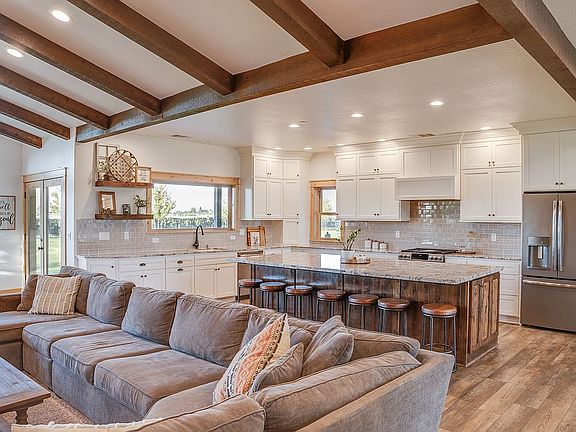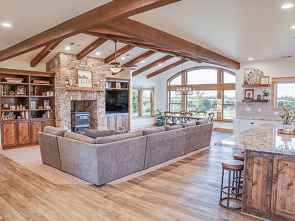 Welcome Home! Country Kingsburg living, yet close to town. This one of a kind property is located down a long private cement driveway and is set on 1.6 acres. One acre is completely landscaped with sprinkler/drip irrigation. The remaining acreage is flood irrigated pasture with white vinyl fencing. The open concept floor plan of this home was designed with entertaining in mind. This move in ready home has four bedrooms (walk in closets), 3 full bathrooms, living room with stone fireplace & mantel, family room, dining room, & open concept kitchen with island that seats 7. Master suite boasts dual vanity sinks, walk in tile shower, walk in closet, and backyard access. 4th bedroom is extra large with large walk in closet. The backyard is equipped with a spacious covered patio, serving counter, & stone seating wall. Other features include owned solar, chicken coop, 3 car garage, fenced backyard, vaulted living room with faux beams, and lots of storage throughout house. Call or text to schedule private viewing.
