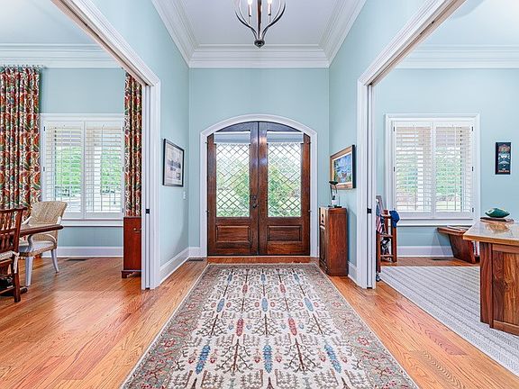 large primary bedroom boasts a newly updated en-suite bathroom. Each additional bedroom holds a private bath with unique cabinetry and tile work. To finish off the inside, enjoy the mudroom with locker storage and laundry room like no other! Outside, find the covered screened-in porch with a wood burning fireplace, a 3-car garage and almost a full acre lot!