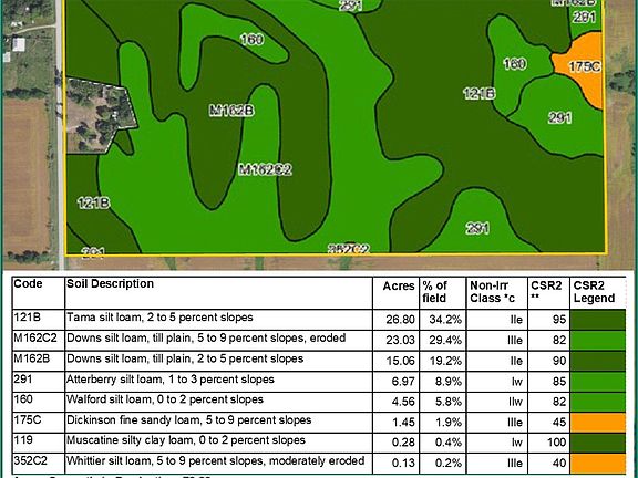 81.46 Acres located northeast of Lone Tree. 78.28 Acres currently in production with an 87.53 CSR2. Excellent-quality, Muscatine Co. farm ground in a strong area!