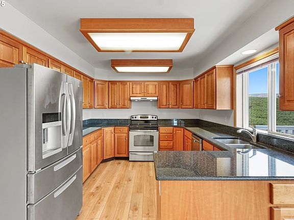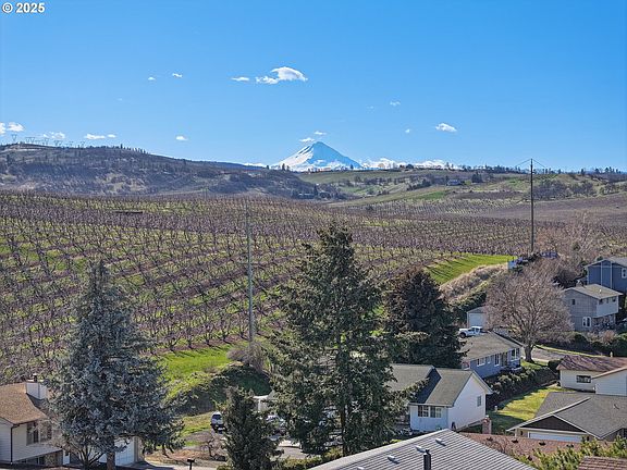 Stunning Home with Breathtaking Views! Enjoy panoramic views of Mt. Hood, Mt. Adams, the Columbia River, and cherry orchards from this beautifully designed 4-bedroom, 3.5-bath home. Located on a quiet street within walking distance to the local hospital and Dry Hollow Elementary, this home offers both convenience and satisfaction. The well-thought-out floor plan features high ceilings, large picture windows, and an open-concept living area. The spacious kitchen and main living space flow onto a walk-out deck, perfect for enjoying the stunning scenery. The main level includes a primary suite, two additional bedrooms, and a laundry room for easy one-level living. The fully finished basement offers fantastic flexibility with a large bonus room and a pool table, plus a fourth bedroom, full bath, and an additional washer/dryer hookup. A huge storage room provides plenty of indoor space to store things, and the basement’s covered exterior entry offers even more opportunity to enjoy the views. With solid construction, a smart layout, and unbeatable scenery, this home is a rare find. Schedule your showing today!