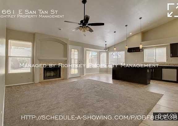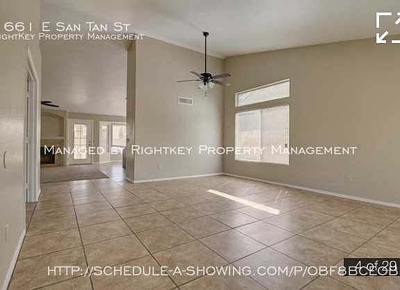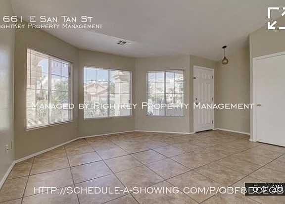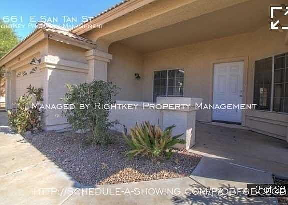 SCHEDULE A SHOWING ONLINE AT: http showmojo.com/lre/0bf8bce0be Fantastic property in great Chandler neighborhood! Tons of upgrades including over-sized diagonally laid tile flooring, granite counters, custom cabinets, stainless steel appliances, gas stove, custom paint, blinds throughout, stone fireplace, & large master suite with private bath featuring double sinks, walk-in closet & separate tub/shower. Big grassy backyard with covered patio.Schedule a showing online today at www.rightkeypropertymanagement.comCall or text Stacia for details 602-672-1787$50 application fee for each adult. Deposit is equal to one months rent plus a $199 administrative fee. Tenant pays all utilities. 5% rental tax/admin fee on top of base monthly rent.