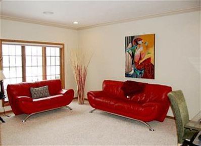 A happy collaboration of style and easy care. Sitting with views of the golf course, this home in the gated community of Sand Creek has a brilliant plan inside and out. There are just a handful of ranch homes similar to this that were designed here. This all brick home offers good light, complete privacy, and beautiful new appointments. The large kitchen with breakfast bar opens up to an airy family room with fireplace. You will notice how easy it would be to showcase your furniture and style. The master suite has his and hers closets. There is a private patio with spa for relaxing evenings. The oversized deck is a great place to take in the sun, entertain or just enjoy the vistas and expansive views of the golf course. The huge basement can be finished or simply used for storage. The owners are providing a one year HWA home warranty. This is an ADDED VALUE listing as the owners are giving you their golf cart for your enjoyment.