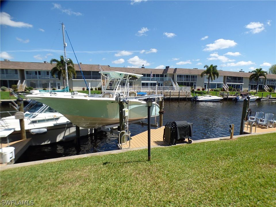 Calling all fisherman and boaters to put this first floor GULF ACCESS condo on your list of must see units. This corner unit features tile throughout and granite counter tops in the recently remodeled kitchen. Along with this sunny condo, includes two deeded parking spots with one under a covered car port, and a brand new 8,000 pound Gem Remote boat lift. Watch the sun rise over the river and set over the basin from your lanai. Edith Esplanade is one of Cape Corals most sought after and convenient riverfront communities. This location is close to all downtown Cape Coral has to offer and just minutes from the bridge to Fort Myers and the beaches. Schedule your private showing today!