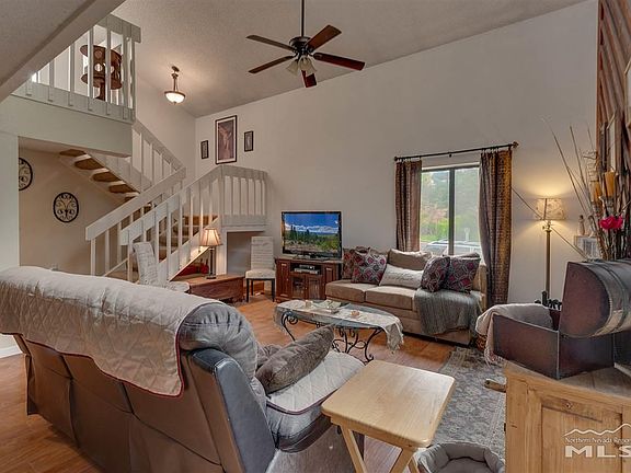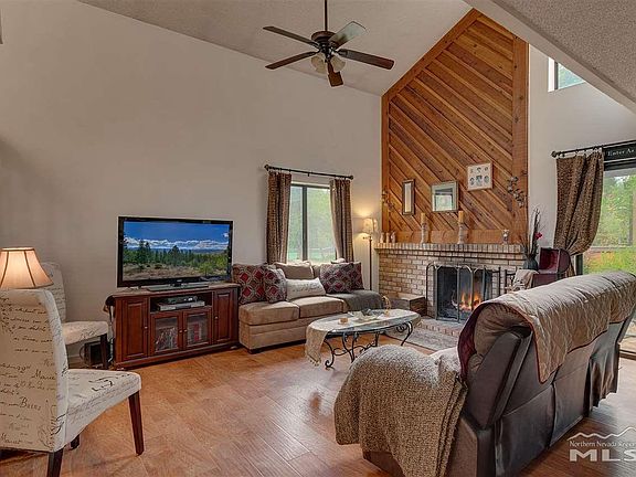 Inside the front gate is a well thought and private yard that invites into the home. The entry foyer overlooks the newly redone large living area with its inviting large fireplace and dramatic high ceilings. All the bathrooms have been tastefully redone. This home is part of the Riverbend HOA. The tennis court and pool are right across the street, and in keeping up with the times, three brand new pickle ball courts are on the property. The home is one block from the scenic Truckee River walking trail.