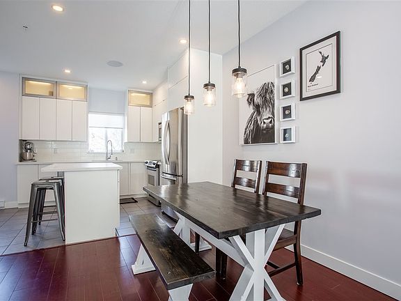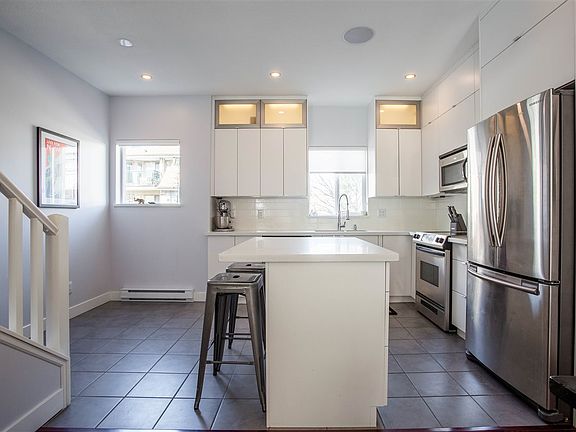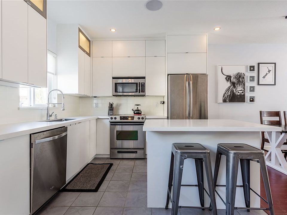 Welcome to this bright & spacious 2 bed, 2 bath townhome located in the heart of a family orientated neighbourhood just steps away from Maclean Park, shopping, schools and transit. This home is located on the quiet side of the development and features a renovated kitchen with updated appliances, including a washer & dryer, over height ceilings, renovated bathrooms, in home speaker system, additional pocket lighting to brighten up on those rainy winter days and an abundance of space for you and your family. This home is fabulous for entertaining or cozying in after a long day at work with your loved ones. Included with this home is an oversized storage locker and two side by side parking stalls. Please call for further details regarding showing requests.