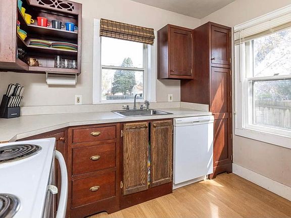 Charming 1 1/2 story home featuring an updated kitchen including appliances. Updated bath on the main floor. Laminate and carpet flooring . Spacious corner lot with a privacy fence and patio area. A must see,