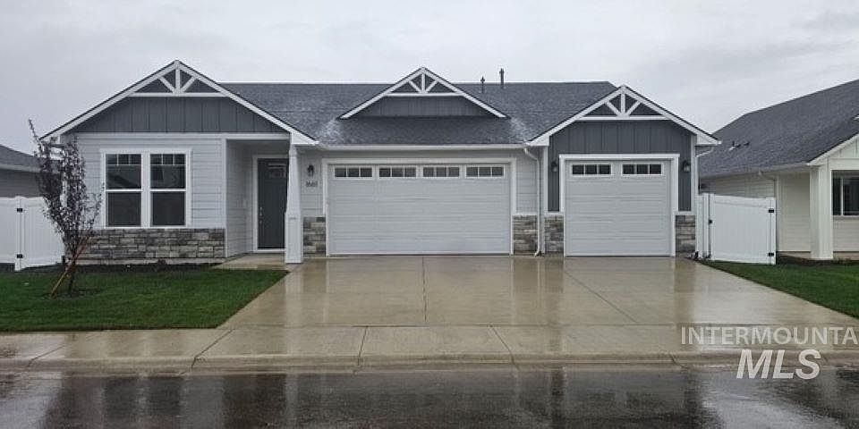 This beautiful Teton floorplan by Agile Homes features 3 bedrooms, 2 bathrooms and 3 car tandem insulated garage. Conveniently located in Emmett in the Dagger Falls subdivision. Nice open concept with 9' walls throughout. Living room features fireplace, vaulted ceilings, and large windows to provide an abundance of natural light to flow throughout the main living areas. Kitchen boasts custom cabinetry with plenty of storage space, 6'9' ft island, quartz countertops, full tiled backsplash, and stainless steel appliances. Private master suite features dual vanity, large walk in closet, & step in shower in the bathroom. Outside features covered patio, full gutters, partial fencing, front sod seed in the backyard, and full auto sprinklers delivered by pressurized irrigation. Photos are similar and not of the actual home.