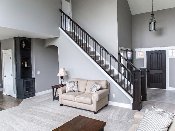 GORGEOUS home with 4 bedrooms, 2.5 bath, 3-stall garage. Open concept floor plan, kitchen wrapped in tasteful cabinetry, quartz counter tops, huge island, real wood floors and stainless appliances. Mudroom area with custom built-in lockers, 1/2 bath, den, and laundry on main floor. Large Master Suite with tall vaulted ceilings, master bath with his/her vanity, custom walk-in tile shower, private toilet area and a large closet. 3 bedrooms and full bath on 2nd floor. Lower level is a daylight with future family room, office, bedroom, full bath. FULL landscape package already installed with UG sprinkling, gutter drain tiles etc. Wooded tree line in backyard, completely private - no one to ever build behind. Right by BC high school, Tanger Mall, M6 and 131. The PERFECT location!