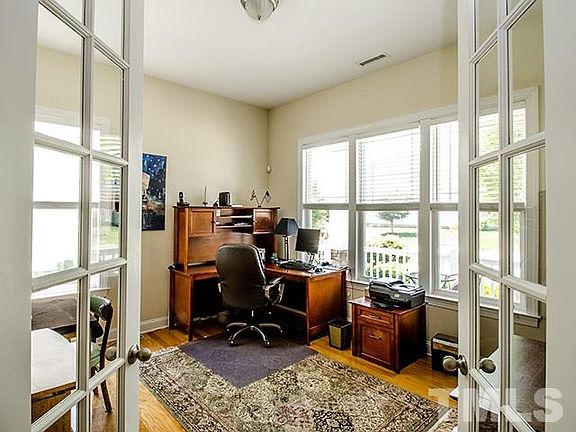 Beautiful home with lovely, private backyard. Overlooks easement that provides maintenance free view. Enjoy bird watching or a relaxing breath of fresh air from deck. Generous windows provide bright environment. Five large bedrooms on second floor. First floor office has a full bath and may be use as a bedroom. An amazing amount of storage is provided by big closets and a very tall crawl space. Kitchen has granite counters, gas cooktop and double ovens. Walk to elementary school and Apex Community Park.