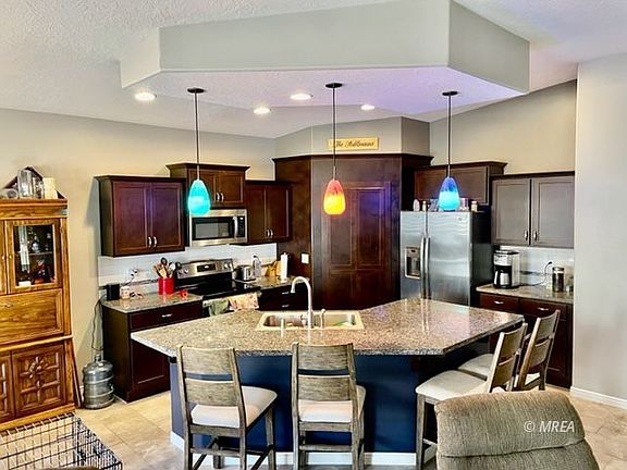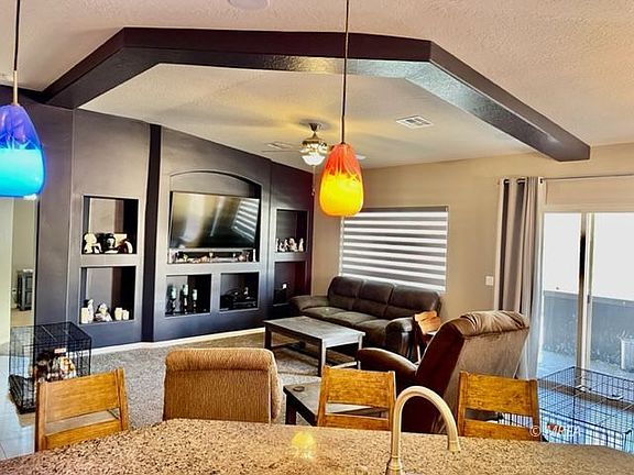 Beautiful Hayden Estates Quartzite 1719 sq ft plan, 3 car garage, Granite counter tops, tiled master and guest showers & bath surround, beautiful, stained Shaker cabinets throughout, 3 tone paint, Built in BBQ for outdoor entertaining, surround sound speakers in living room ceiling, stamped & colored concrete front and back, upgraded butler pantry door to a large walk-in pantry, 18-inch tile throughout, Front yard sitting area, fully landscaped front & back, Backyard fully fenced w/gate. This listing is located at the northeast side of Mesquite close to all the side-by-side trails into Lincoln County and surrounding areas.