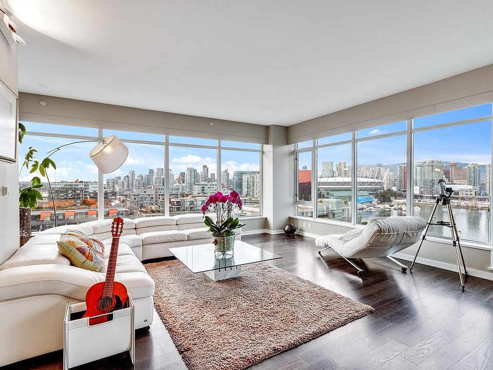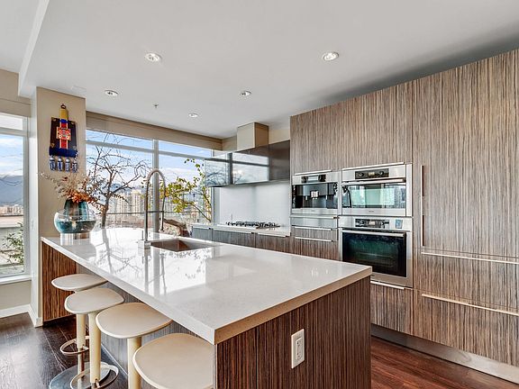 Exclusive sophisticated penthouse with stunning water, mountain, and city views at the SAILS-Olympic Village. Featuring 2417sqft luxurious living with 3 bedrooms, 4 bath, over 1018sqft private roof top garden and a wrap-around 355sqft balcony for outdoor entertaining. Large living areas are highlighted by floor-to-ceiling windows with prime NW exposure for spectacular sunsets and tranquil water views. LEED certified green building offering exterior motorized shades and radiant cooling/heating system, Miele S/S appliances, European cabinetry, and luxury faucets throughout. Amenities includes Gym and party room in the building and the 6500sqft Gold Medal Club. Experience this most vibrant waterfront community surrounded by fine dining, shopping, seawall, and parks.