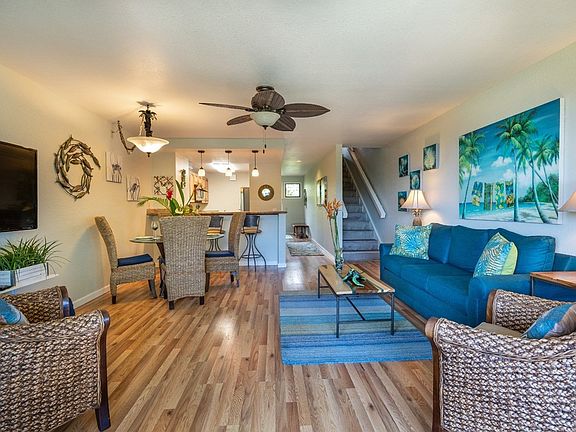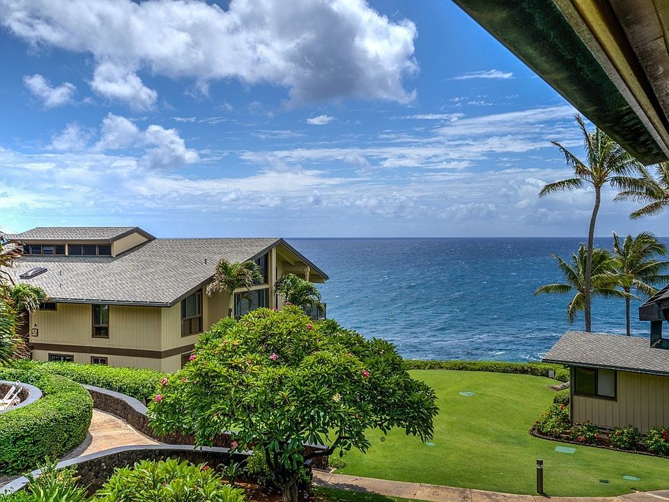 Fully renovated in 2019, this tastefully furnished 3 BR 2.5 BA condo is a very successful vacation rental at the Makahuena in Poipu. Enjoy ocean views in style and comfort from the covered lanai which extends the living room outdoors. The new floor to ceiling Anderson sliders span the width of the living room, and include a lifetime transferable warranty. The powder room and laundry are off the entry foyer with ocean facing living areas beyond. This spacious condo easily accommodates a total of 8 guests in 3 private bedrooms. On the second level are 2 bedroom suites with fully renovated baths. The third bedroom on the upper floor is very private and comfortably sleeps 4. The living room and bedrooms have all new furniture and the condo has been recently painted from top to bottom.The pool and spa are centrally located surrounded by tropical landscaping with the sound of the surf at the edge of the property. Sunsets are enjoyed overlooking the rocky bluff with expansive coastline views to the west and Niihau in the distance.