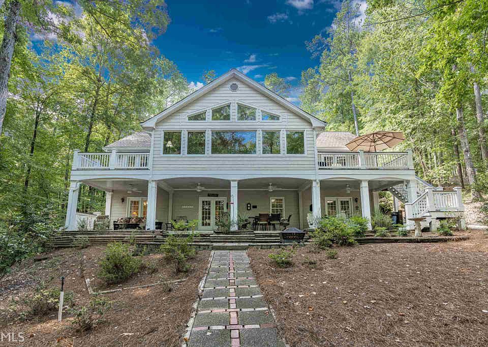Sought after Lake home in Reynolds Lake Oconee under $800,000! What a wonderful location by land & water. This home has a new sea wall & updated boat lift! Home has 5 bedrooms split plan, master plus 2 bedrooms with 2 full bathrooms on main, 2 bedrooms and full bath in basement. It includes two full kitchens for entertaining at the lake. On the main level, the sunroom off the kitchen feels like a bird nest overlooking Lake Oconee. This home also includes a covered terrace with conveniences of walkout basement leading to the lake. Great views and location. If that isn't enough, it also has a driveway to the basement and a workshop for lake toys. There is a Golf membership available with this property.