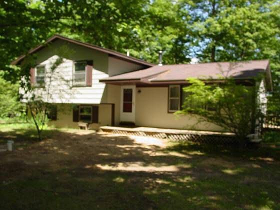 Quiet, wooded 10 acres that backs to State Land and is only minutes to Pleasant Lake! Plus this property has a 3 bd home that has been freshly painted inside and out, newer doors, brand new 5 well and pressure tank, new laminate flooring,remodeled bath, multiple decks, 2 car garage, circle drive and lots of great perennial gardens. This Tri-level offers a 24'x6' front deck that overlooks a deep front yard so the house sits a ways off the road for privacy. Bsmt is not finished but was used as a family room. Basement can be easily finished. Sale includes range that was only used for 6 months after it was purchased and a refrigerator that is only 3 years old. One year Home Warranty too! Owner will consider a land contract.