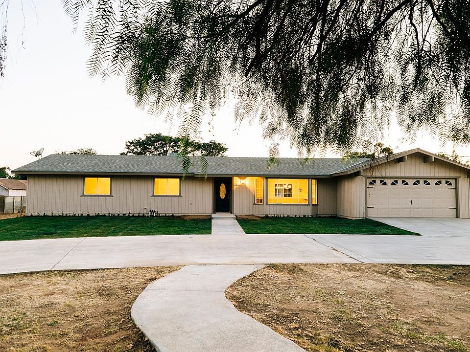 Traditional Sale! This move in ready 1800 sf home is located on a huge lot of nearly an acre. It is far off the road front and still has enough space for a huge backyard. It has a 2 car garage and a U shaped driveway with lots of extra parking. Plenty of room for RV parking as well. The home has fresh interior and exterior paint in neutral tones. The kitchen will have new stainless steel appliances installed at close of escrow. There is new wood flooring in the living spaces and brand new carpet in the bedrooms. The bathrooms have new granite vanity tops and new tile work. The master bedroom has a private bathroom with dual sinks and 2 walk in closets. The laundry room is spacious and has extra storage cabinetry. This property is likely zoned for animals. Buyers please verify