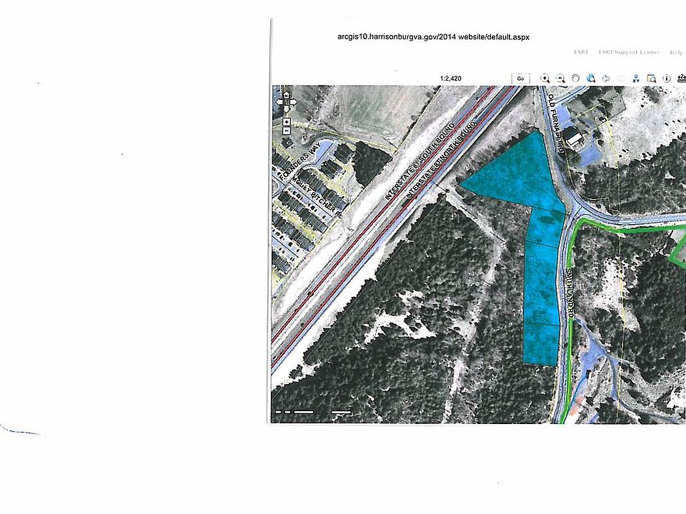 2.19 Acres of development potential. Lots of road frontage with great visibility - Good location on the corner of Smithland Road, bordering I-81. Per the City of Harrisonburg rezoning is an option to medium density mixed residential, R5, high density residential, R6 or R7 mixed use. The property to the left was recently approved for R8, duplex on small lot homes. Existing dwelling sold "as is" was an old school house and then rental home. Bridge construction beside the property, across I-81, being complete