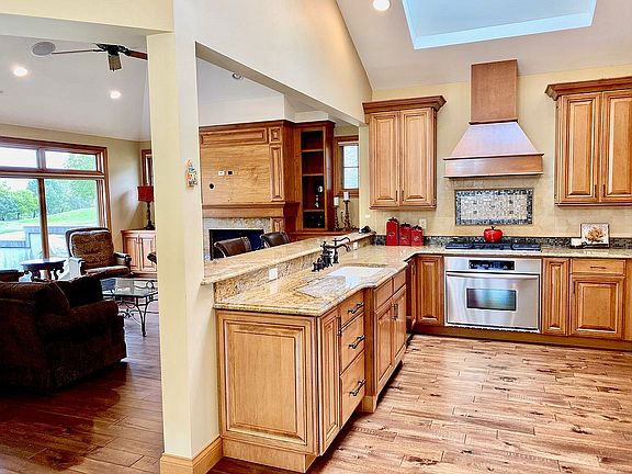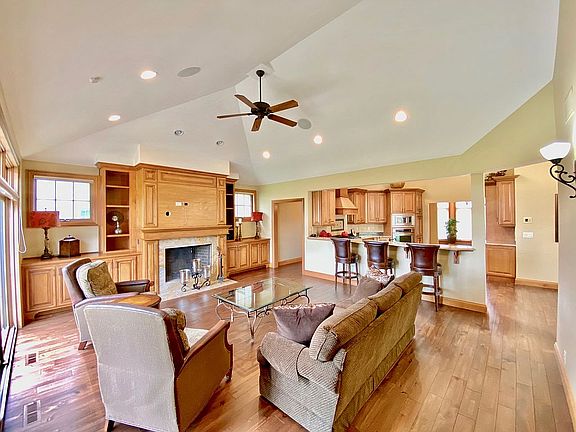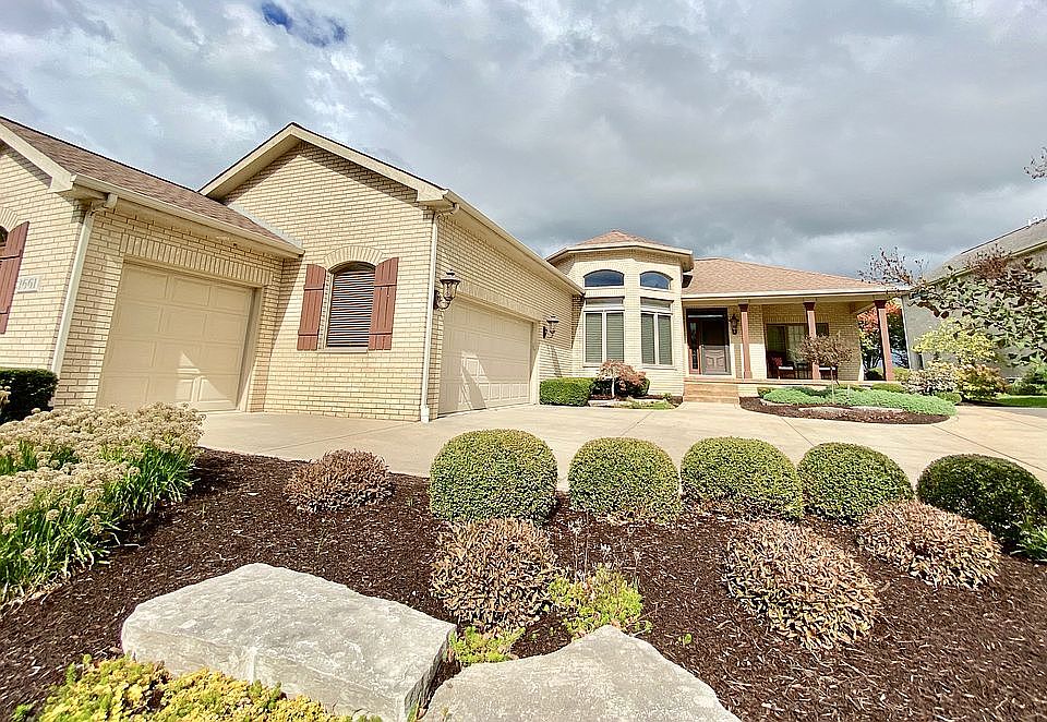 A happy collaboration of style and easy care. Sitting on the #6 green of the golf course, this 2 bedroom (possible 3rd bedroom), 3 bathroom home in the gated community of Sand Creek has a brilliant plan inside and out. The all brick open concept floorplan offers good light, vaulted ceilings and beautiful new appointments. The large kitchen with breakfast bar opens up to an airy family room with wood burning fireplace great for entertaining. This home has been completely remodeled inside and out in 2012 including the newly, fully finished daylight basement containing a second working kitchen and full bathroom. The large 2-car garage has great space with an adjacent golf cart garage. There are just a handful of these highly sought after ranch homes that were designed here. For sale by owner, please send text to 219-983-2380.
