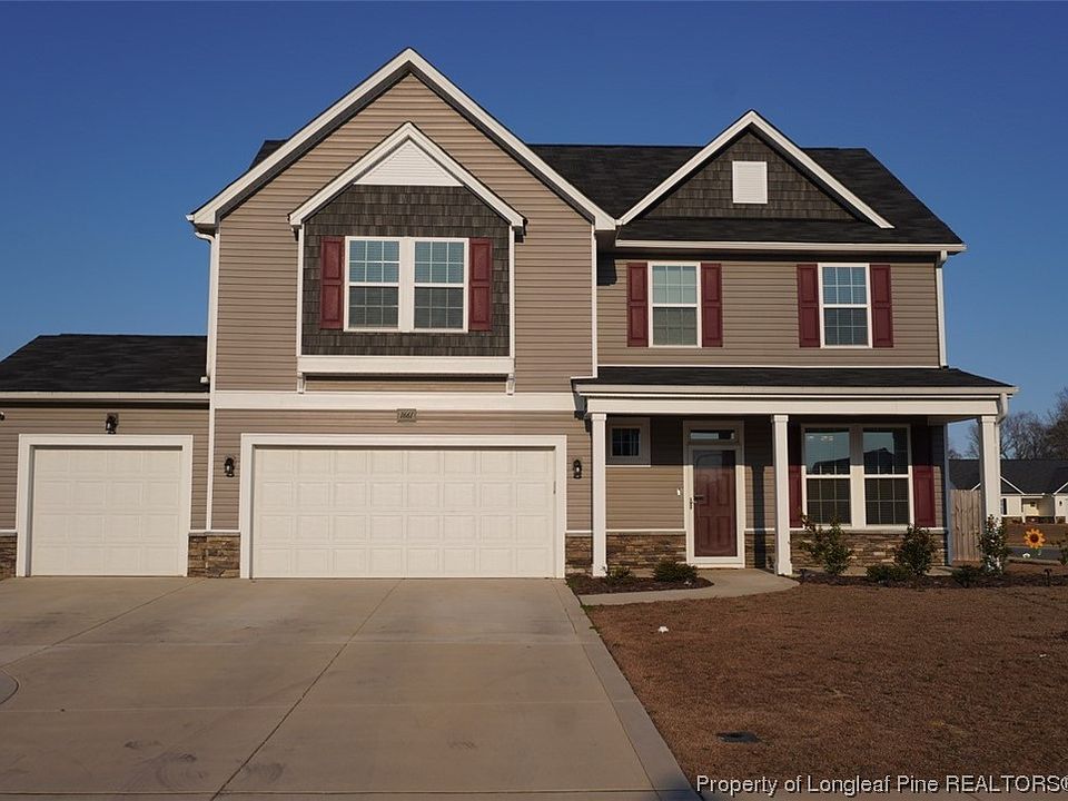 Welcome to your new home! This charming residence is perfect for your growing family and features 3 bedrooms, 2 1/2 bathrooms. All Bedroom and open loft with surround sound hookups upstairs. All the Bathrooms upstairs feature double vanity. Primary Bathroom has a seperate shower and garden tub. The kitchen boasts granite counter tops and a spacious island, staggered cabinets, tile backsplash, perfect for culinary adventures and entertainment. Enjoy the elegance of a formal dining room and unwind in the living room with a cozy fireplace. Your new home offers a fantastic fenced-in backyard, ideal for outdoor gatherings. 3-car garage, for your parking and more storage space. Situated on a corner lot in a desirable neighborhood, this home combines convenience with style. Close to shopping centers , Raeford , Hospital and Ft. Liberty for an easy commute. Don't miss the chance to call this place yours!