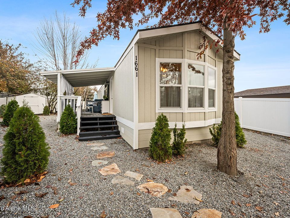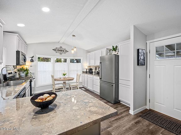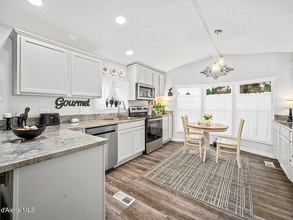 MOTIVATED SELLER! Incredible new price for this stylishly updated 2 bed, 1 bath home that's priced to sell! The prior owner remodeled the home in 2021/2022 with new LVP flooring throughout, tiled shower, bathroom vanity, kitchen countertops, cabinets and a large stainless steel kitchen sink. Not only is this home atheistically pleasing, it's virtually low maintenance thanks to the new gas furnace, new gas water heater, new roof, new siding, new skirting, new vinyl windows, new doors and fixtures. The current owner invested an additional $40,000 (approximately) in upgrades by adding new air conditioning, low maintenance landscaping, a tuff shed for storage, new vinyl fencing and weather stripping around the doors. To sweeten the deal, the seller is including a newer refrigerator and stackable washer and dryer. The $895 monthly lot fee includes use of the club house, swimming pool, pickle ball court, weight room and playground area. It also covers water, garbage, sewer and snow removal from the roads throughout the park. Conveniently located near medical services, shopping and a mere 3.5 miles to downtown Coeur d'Alene! This property is priced well below market value and is the perfect home for someone looking for a comfortable, low maintenance, turnkey place to call home!