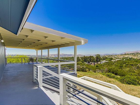 One of only two houses on West Winds Ridge private drive. Panoramic views from inside and on the 400sqft covered patio. Acres of open space behind the backyard. Lush chaparral landscape abounds with natural wildlife. Exquisite finish materials include hand built maple cabinets and vanities, granite in the kitchen, quartz and live edge wood in the bathrooms, and aluminum rod interior stair railing. Upstairs Master bathroom boasts a massive shower with a custom rainfall head. Secondary master downstairs on first floor. Property was originally a 1715 sqft 2 bed/2bath. 1200 sqft of living space, 3 bedrooms, and 1.5 baths were added on legally with permits. Every single piece of sheet rock is brand new, all water lines from the street to the house and the copper plumbing inside is new, full fire sprinkler system, vaulted ceilings via scissor trusses upstairs. Large walk in kitchen pantry. The range hood is a custom rise up unit with an external 900CFM blower. New water heater, new furnace, new AC system with ALL new ducting. LED lighting throughout. Dual master layout with 1 master downstairs. House meets and exceeds new construction seismic and energy efficiency guidelines. Home features: - 2915 square feet - 400 sqft west facing deck - 1.1 acre lot - backs up to lush open space - 5 bedrooms - 3.5 bathrooms - DUAL master bedrooms (primary on top floor, alt on bottom floor) - 3 car garage - Vaulted ceilings on top floor - LED can lighting throughout, all LED bulbs elsewhere - Large driveway - RV parking - Beautiful views from 4 bedrooms - Each bathroom has high end custom ceramic, glass, or stone tiling - 20" Master bath rain shower with alternate hand held - Walk in kitchen pantry - Custom 900 CFM downdraft with hidden rise up range hood - Granite kitchen countertops - Quartz bathroom vanity tops - All new water supply lines from the street and new copper in house - New 50 gallon water heater - Fire sprinklers throughout home - Brand new HVAC system and all new ducting - House meets and exceeds County seismic building and energy efficiency guidelines
