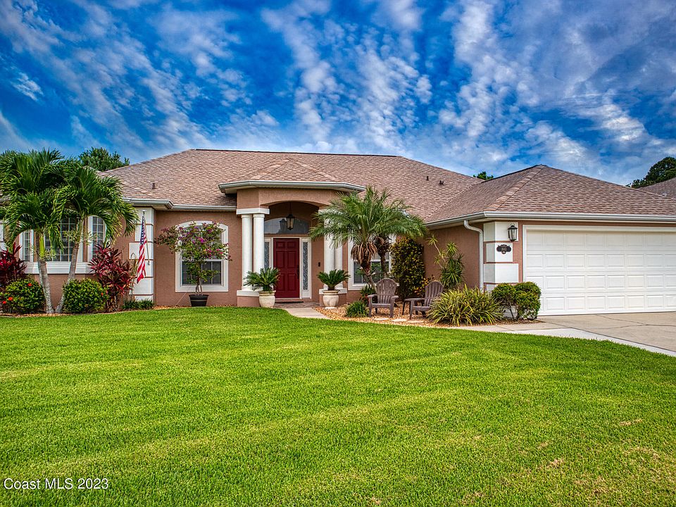 Gorgeous pool home on oversized lot in Oak Grove. This spacious house has 3 BR, family room and living area with seperate office/4th BR. 2 full baths with half bath leading to pool area. Split foorplan with Main BR having double walk-in closets, double vanity, and large soaking tub. Beautifully updated kitchen with S/S appliances and granite countertops. Custom built-in seating in nook area with handmade wooden table, all convey for plenty of seating. Huge front yard for play and fully fenced backyard for pets. Private lush tropical preserve view. Relax on the lanai with a cold beverage at the Tiki bar, then take a dip in the saltwater solar heated pool. New roof in 2018, A/C rebuilt in 2021. Sellers offering $10K flooring allowance. Close to A rated schools, shopping, beach and 95.