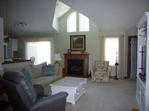 This beautiful Tower Lakes condo was completed in 2012. The interior features a gorgeous white kitchen with a moveable island and stainless appliances. Cathedral ceilings in the great room and a gas log fireplace. The master suite has a walk in closet and the bath has his & hers vanities. An additional bedroom is perfect for guests or an office. Full basement. This luxury condo community is ideally located close to restaurants and shopping, and adjoins Fox Glen Park. $125 association fee covers trash, lawn care, snow removal and exterior insurance.